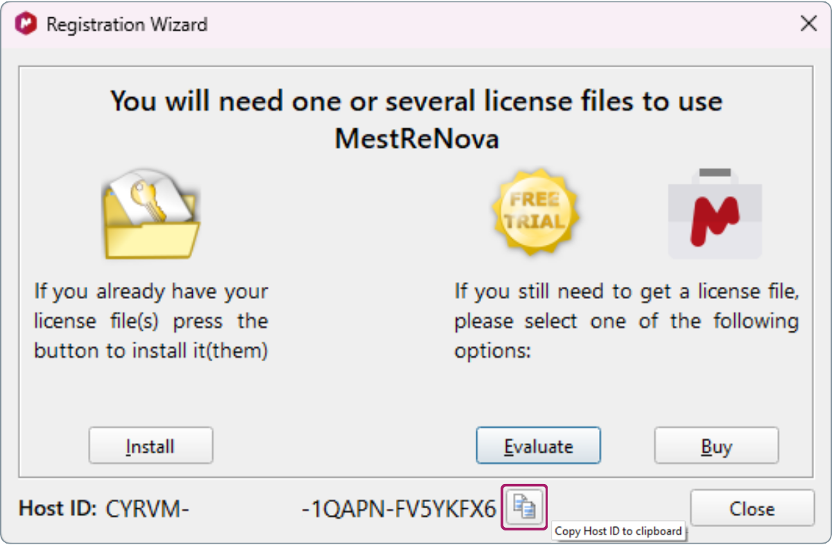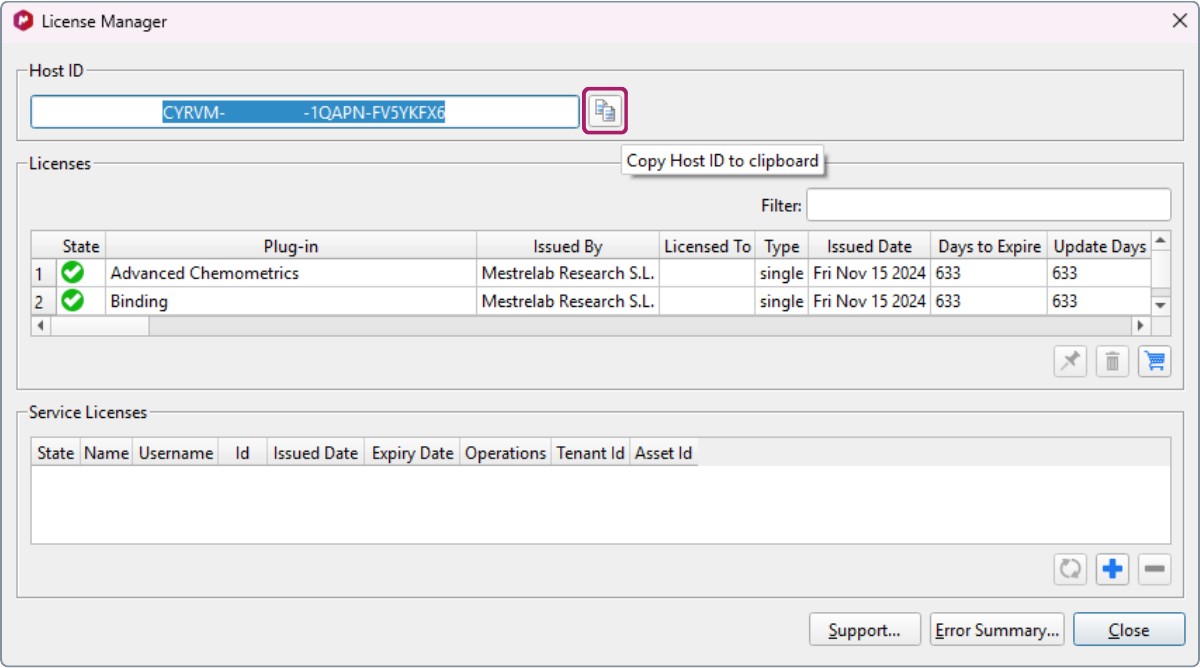 - In the License Manager window, click the “Copy HOST ID to clipboard” button.